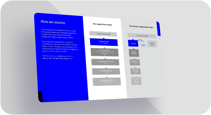 How we source Our supply chain model Our licensee supply chain model Our supply chain encompasses a product’s journey from creation to distribution. We seek to have 100% Distribution and retail Distribution and retail visibility of our supply chain to ensure we’re 4 mitigating the risks of modern slavery by 2032. Royalties Pentland Brands Licensee Pentland Our supply chain model varies for owned and Stock suppliers Intellectual Brands licensed brands. We operate the footwear license for property Kickers in the UK. We also act as the licensor for our owned brands; for example, ellesse is managed by our Product assembly Product partners in France, Italy and the UK. Panel Print, Embroidery, Homeworkers, assembly Subcontractors Tier 1 Tier 1 Find more about our supply chain model here. View our tier 1 and tier 2 factories lists here. Materials and components Materials and Tier 2 components Tier 2 Chemicals and dyes Chemicals Tier 3 and dyes Tier 3 Raw materials, farming Raw materials, and agriculture farming Tier 4 and agriculture Tier 4