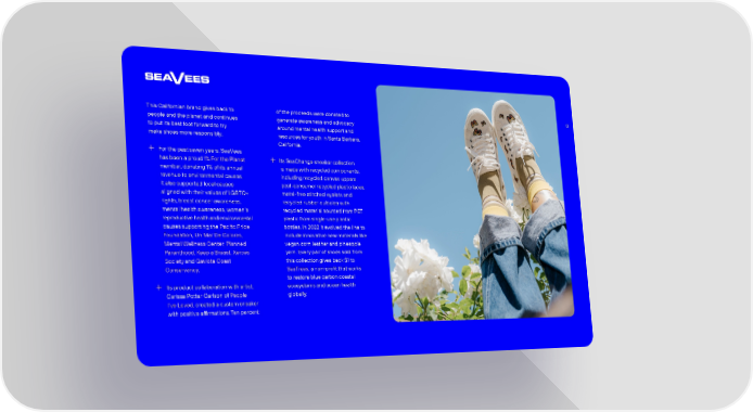 13 This Californian brand gives back to people and the planet and continues to put its best foot forward to try make shoes more responsibly. For the past seven years, SeaVees has been a proud 1% For the Planet member, donating 1% of its annual revenue to environmental causes. It also supported local causes aligned with their values of LGBTQ+ rights, breast cancer awareness, mental health awareness, womens reproductive health and environmental causes supporting the Pacific Pride Foundation, Un Mar De Colores, Mental Wellness Center, Planned Parenthood, Keep a Breast, Xerces Society and Gaviota Coast Conservancy. Its product collaboration with artist, Carissa Potter Carlson of People Ive Loved, created a custom sneaker with positive affirmations. Ten percent of the proceeds were donated to generate awareness and advocacy around mental health support and resources for youth in Santa Barbara, California. Its SeaChange sneaker collection is made with recycled components, including recycled canvas uppers, post-consumer recycled plastic laces, metal-free stitched eyelets and recycled rubber outsoles with recycled material sourced from PET plastic from single-use plastic bottles. In 2022 it evolved the line to include innovative new materials like vegan corn leather and pineapple yarn. Every pair of shoes sold from this collection gives back $1 to SeaTrees, a non-profit that works to restore blue carbon coastal ecosystems and ocean health globally.
