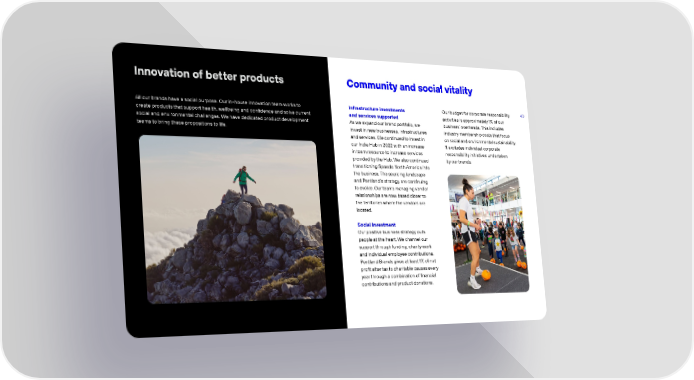 40 All our brands have a social purpose. Our in-house innovation team works to create products that support health, wellbeing and confidence and solve current social and environmental challenges. We have dedicated product development teams to bring these propositions to life. Infrastructure investments and services supported As we expand our brand portfolio, we invest in new businesses, infrastructures and services. We continued to invest in our India Hub in 2022 with an increase in team resource to increase services provided by the Hub. We also continued transitioning Speedo North America into the business. The sourcing landscape and Pentlands strategy are continuing to evolve. Our teams managing vendor relationships are now based closer to the territories where the vendors are located. Social investment Our positive business strategy puts people at the heart. We channel our support through funding, charity work and individual employee contributions. Pentland Brands gives at least 1% of net profit after tax to charitable causes every year through a combination of financial contributions and product donations. Our budget for corporate responsibility activities is approximately 1% of our business overheads. This includes industry membership costs that focus on social and environmental sustainability. It excludes individual corporate responsibility initiatives undertaken by our brands. Innovation of better products Community and social vitality